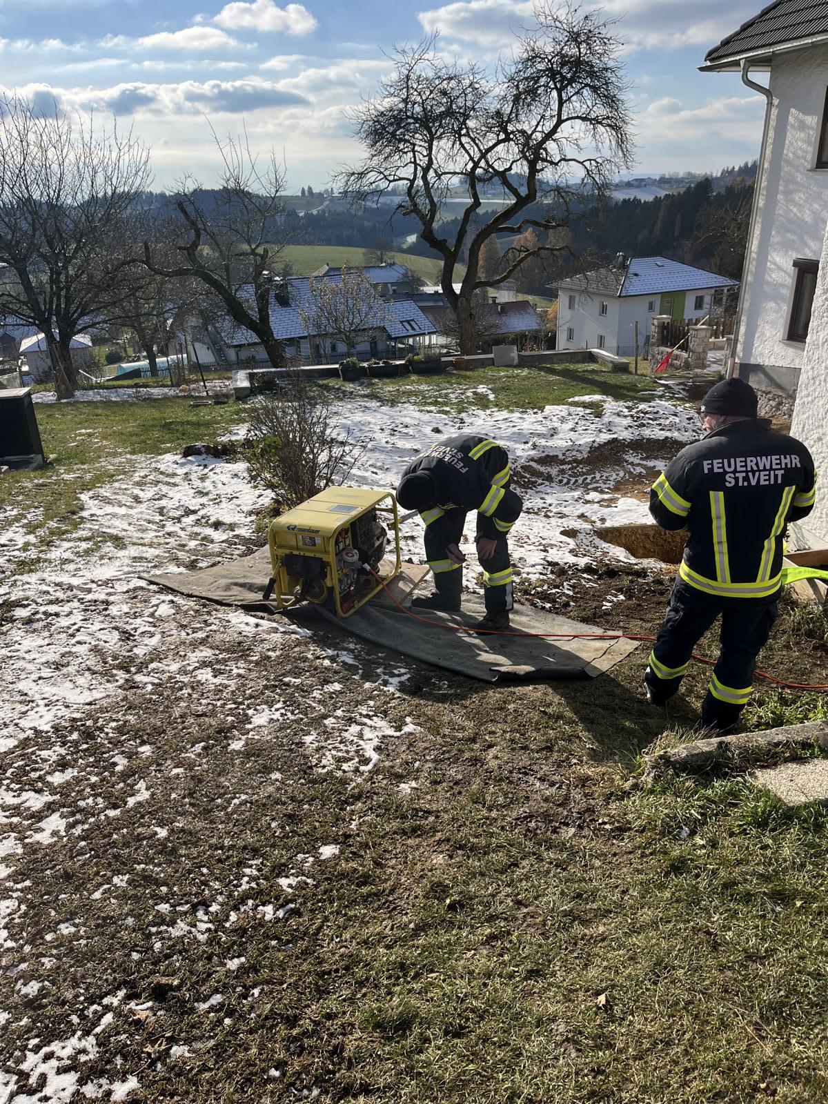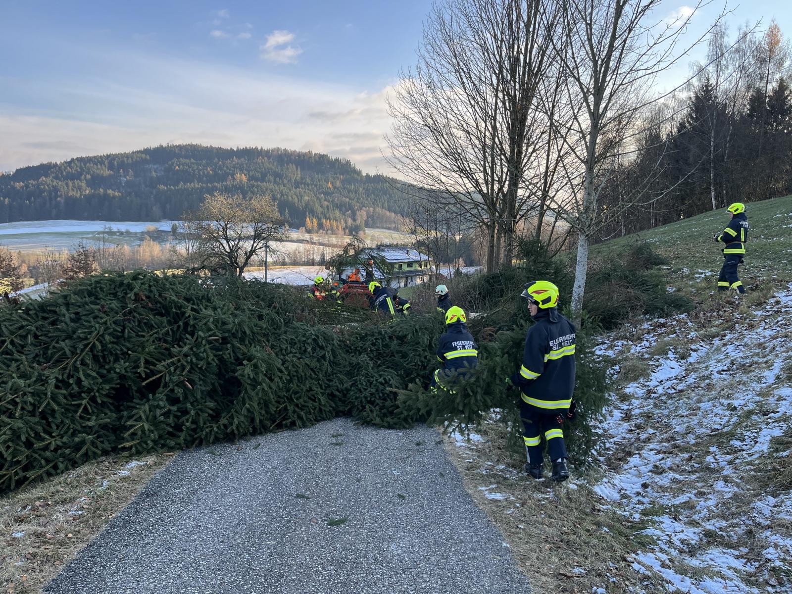 In den frühen Morgenstunden des 22. Nov. zieht ein Sturm über St. Veit. Ab 04:00 ist der Strom weg. Die Feuerwehr ist bereits in der Nacht beschäftigt einige Bäume zu entfernen, das wahre Ausmaß zeigt sich aber erst am Vormittag. Der Bürgermeister richtet einen integrierten Krisenstab, bestehend aus Feuerwehr und Gemeinde, ein. Die Feuerwehr versucht verschiedene Einsätze je nach Priorität abzuarbeiten. Übungsbeginn ist um 12:00, es regnet es noch leicht und es kommen vereinzelte Windböen. Es ist unklar wie lange der Stromausfall noch bestehen bleibt.
